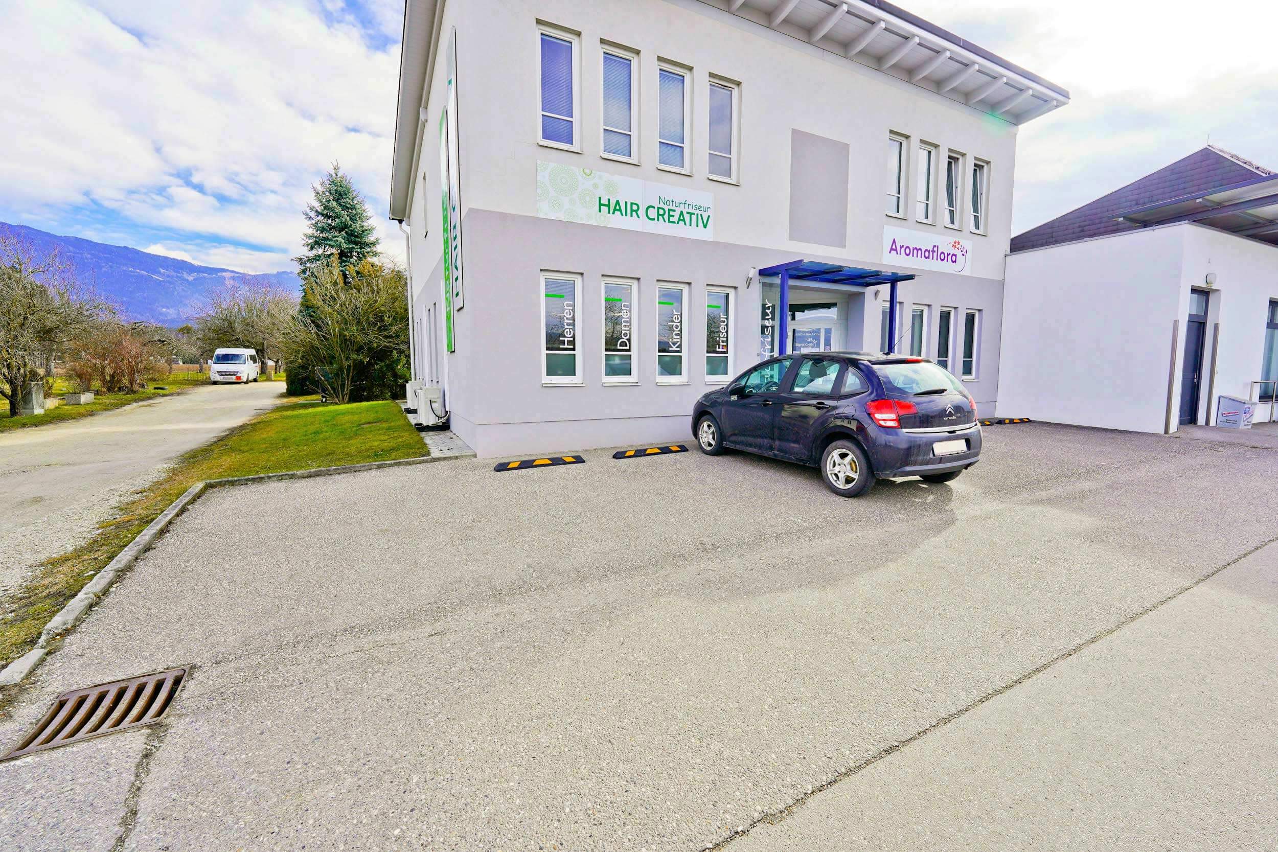 Vor dem Gebäude stehen 6 asphaltierte PKW-Stellplätze zur Verfügung. Im Erdgeschoss befinden sich zwei Geschäftslokale mit separaten Eingängen, wodurch eine unabhängige Nutzung der Einheiten möglich ist.